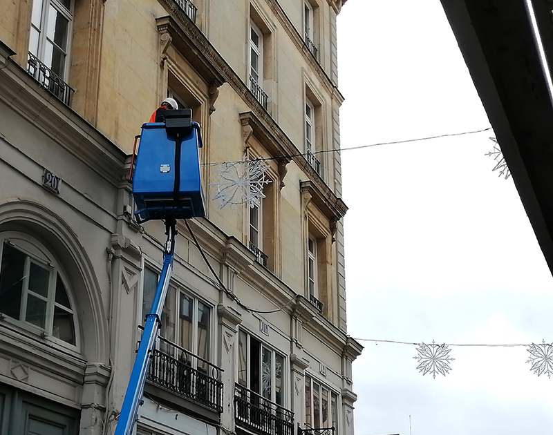 ▲買い物に出たら、ちょうど電飾の設置をしていました