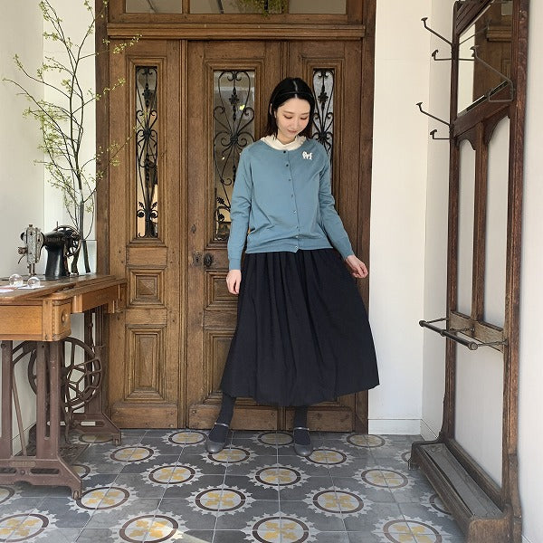 きれいなブルーのカーディガンで一足先に春を感じています。コートの下からちらりとのぞかせて、いつもの冬の装いにも少しアクセントを。 靴/AVRIL GAUエナメルヒールパンプス(エレファント)※二子玉川店でお取り扱いございます |