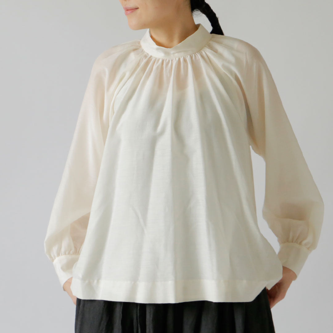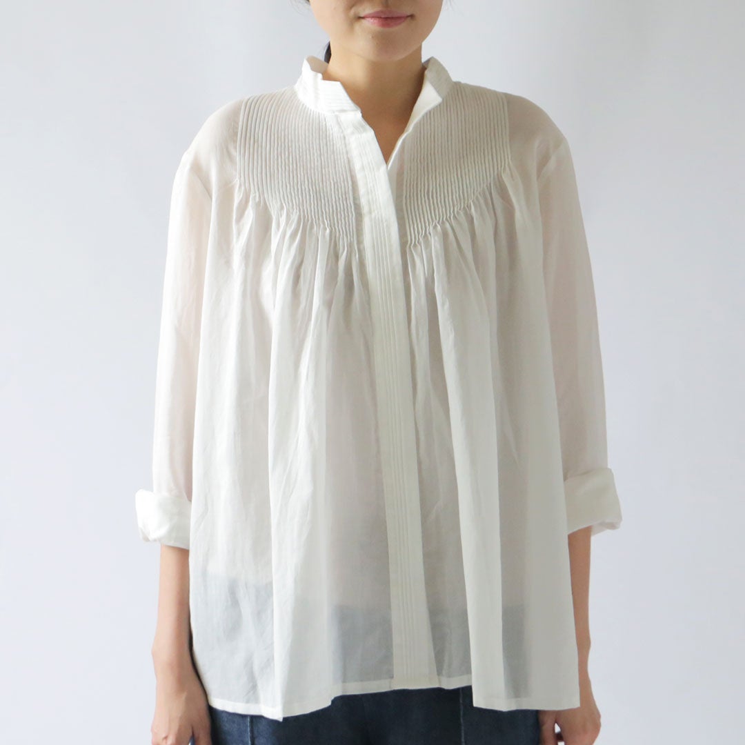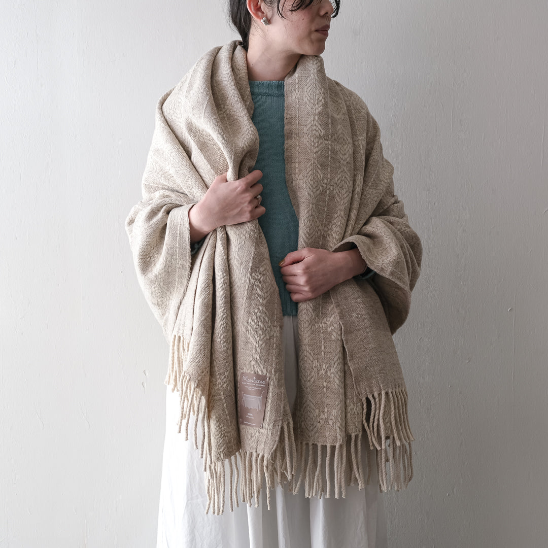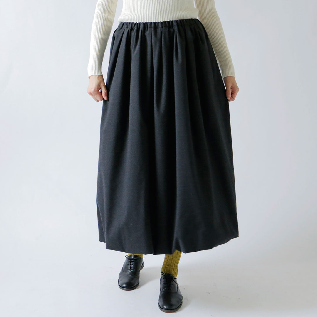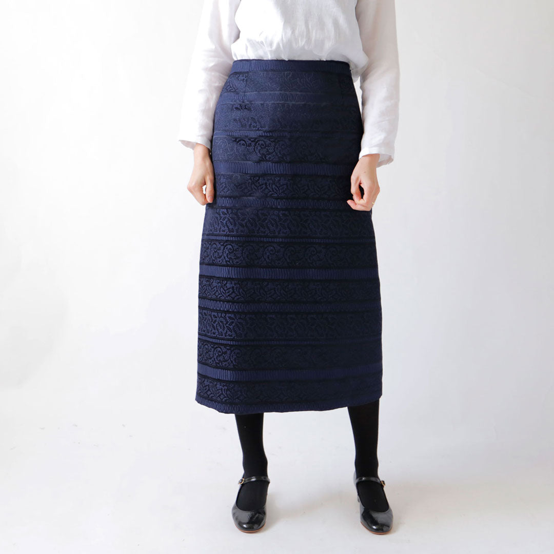 織り模様が美しい新作のスカート。きちんと感はそのままにリラックスして着たいなと思い、衿の詰まったコットンブラウスと革ひも靴であわせてみました。 靴/Le yucca's ※日本橋店にてスペシャルプライスにて販売中 |
