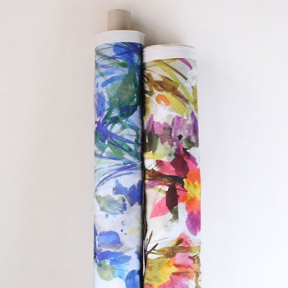 幅の狭い部分に取り付けるため生地分量も少なく縫製も楽なので、気軽に気分を変えたい!という方におすすめ。今回はクラシックな柄がプリントされた、透け感のないコットンリネンの「シルヴァン」のライトブルーを使いました。