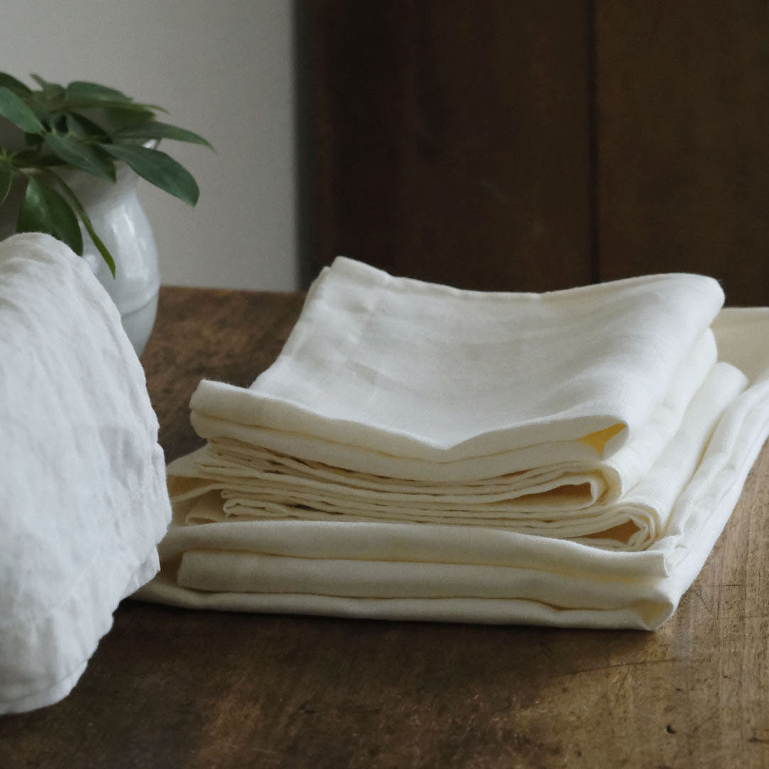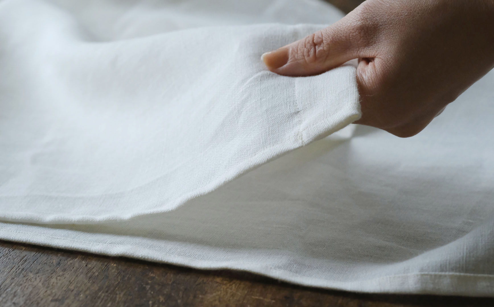 リネンは汚れが繊維の内部に入り込みにくい構造になっているので、汚れがついたとしても比較的落としやすい素材です。また、濡れると繊維の強度が増すので、繰り返し洗濯していくタオルにも適しています。