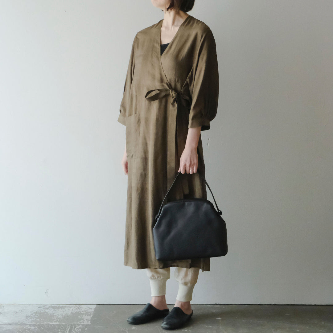 カシュクールドレスは開ければ羽織のように、閉めればワンピースのように着られるので、春~秋は羽織やドレスとして、冬はニットに重ねて。どんな季節も活躍します。