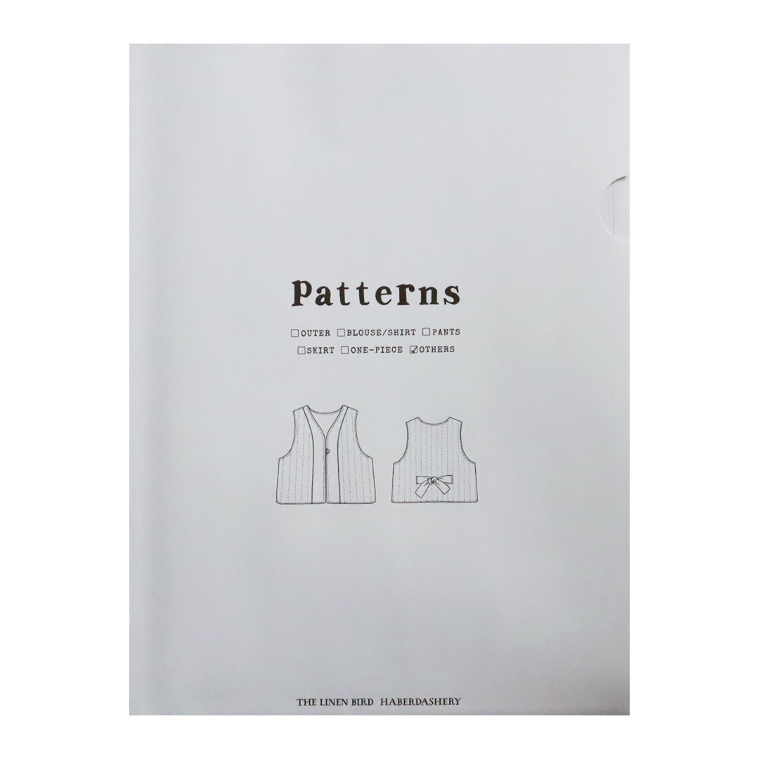 表身頃の布をミシンでキルトして仕上げる、あたたかなキルトベスト。コンパクトなサイズ感でワンピースに重ねたり、パンツやスカートにもバランスよく着ることができます。リボンなしで仕上げることも可能。コートの下に着ればアクセントにも。