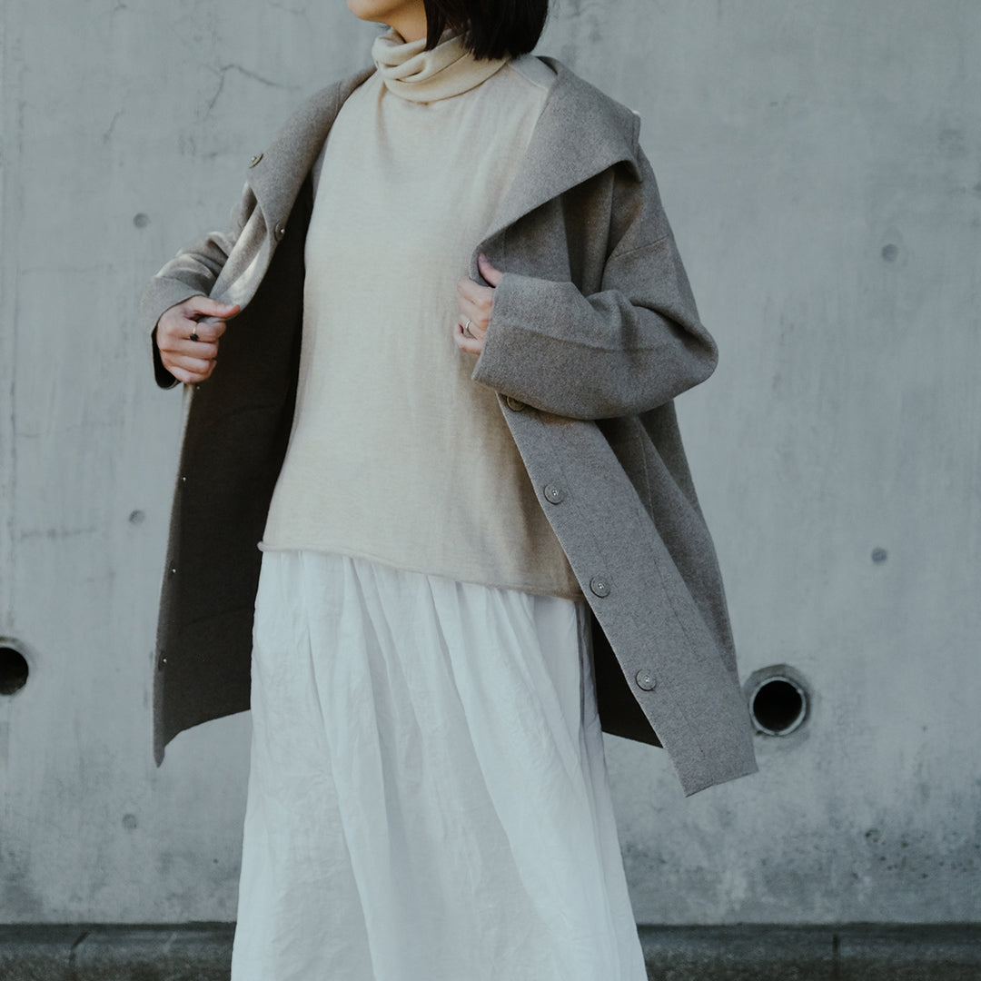 ■軽やかに羽織れる、大人のフードカシミヤコート