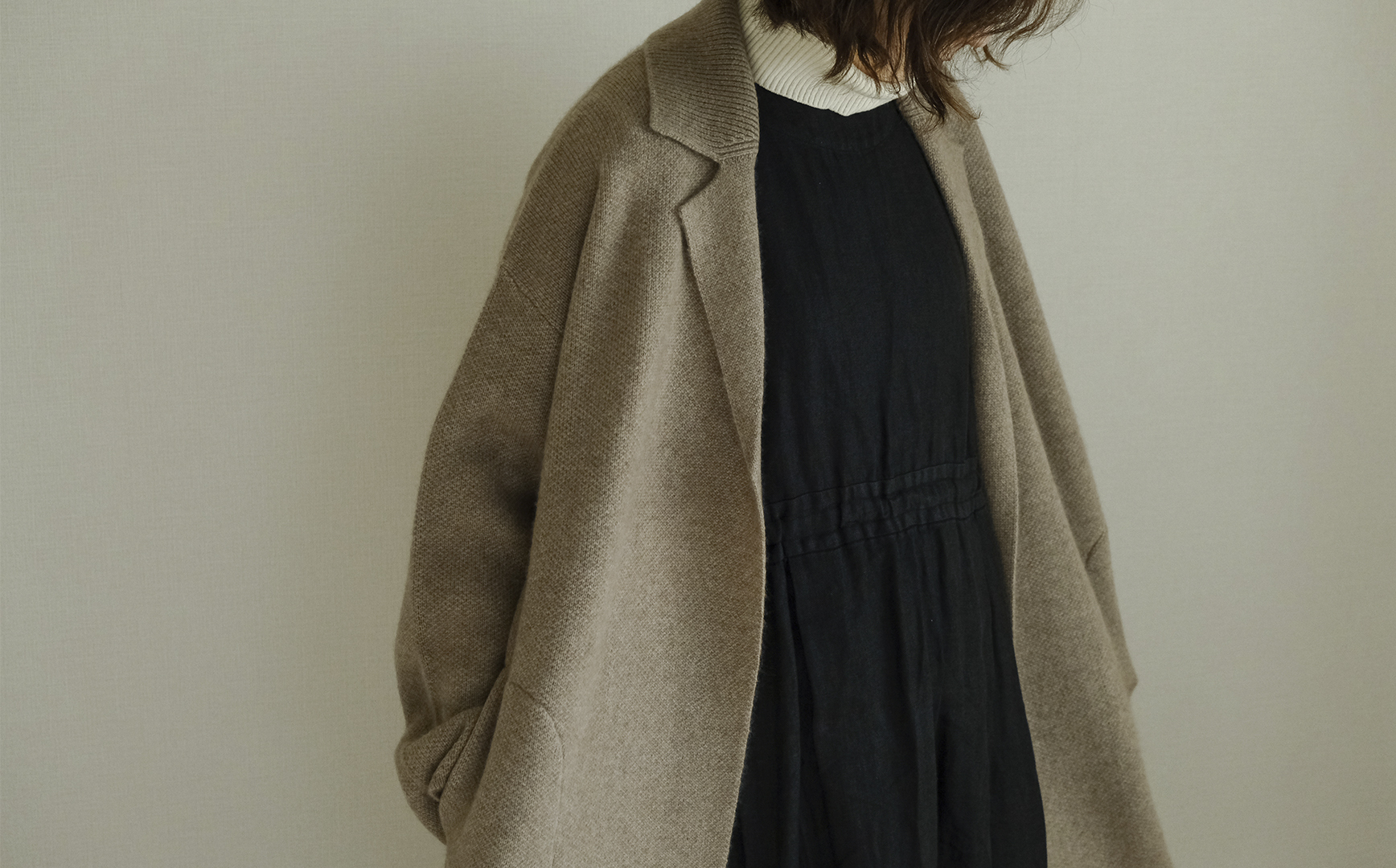 真冬はカーディガンのようにさっと羽織ってインナーコートとして着用したり、こちらも車での移動に最適なアイテムです。春先まで違和感なく着られるのもうれしいですよね。