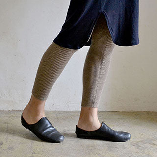 ひとつはピッタリ派におすすめの「アゼ編みリブレギンス」。もたつかないので、パンツの下に履くこともできますよ。
