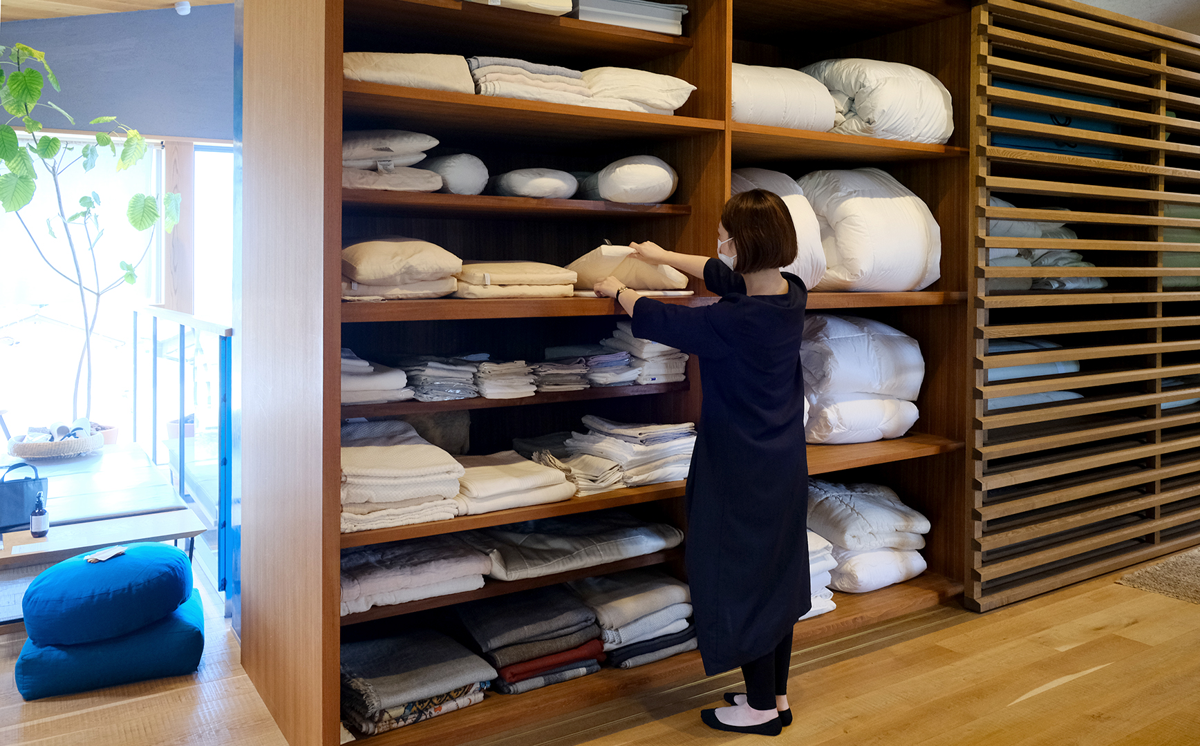 ISHITAYAスタッフの武蔵さんに話をうかがうと、自分の体質に合った一枚を持つことで快適な眠りが得られるんだそう。