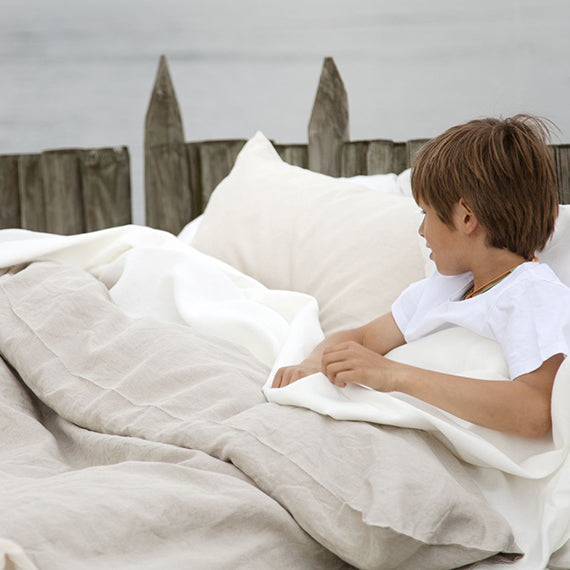 リネン(亜麻)の繊維は中空の構造を持ち、眠っている間の汗をすばやく吸収・発散します。天然繊維のなかでは類を見ないほど熱の伝導率が高く、さらりとした肌触りはこの特性によるもの。