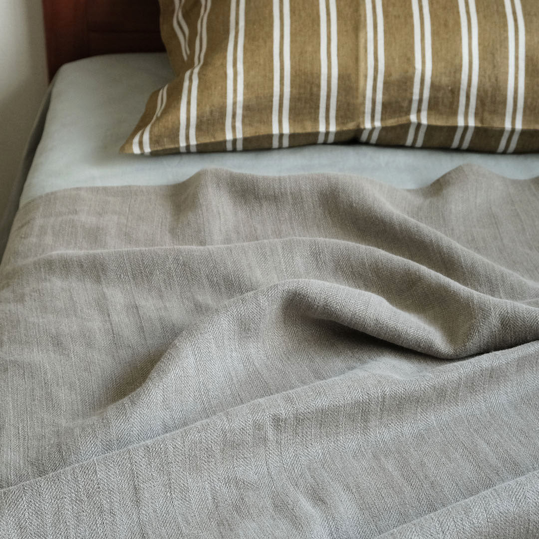 《リネンの部屋》厚みのあるウォッシュヘリンボーンでひんやり気持ちのいい眠りを