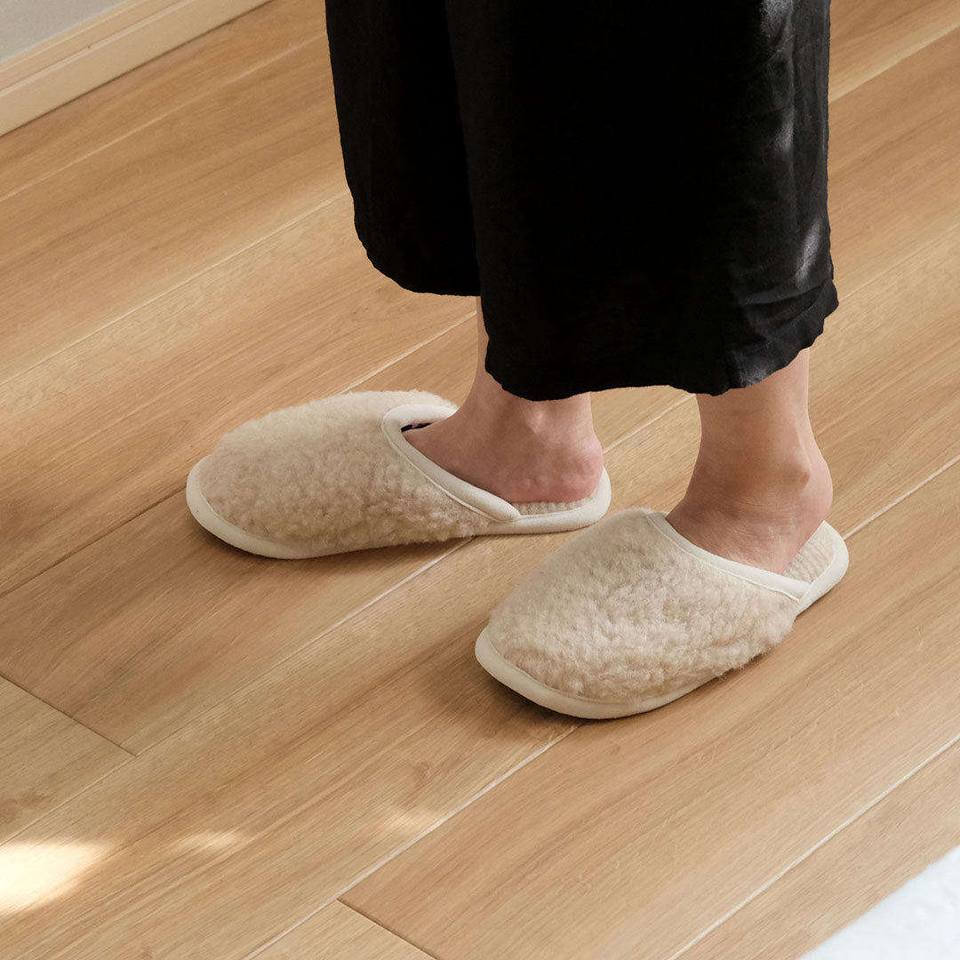 寒さ知らずのあたたかさ。メリノウール100%のスリッパ