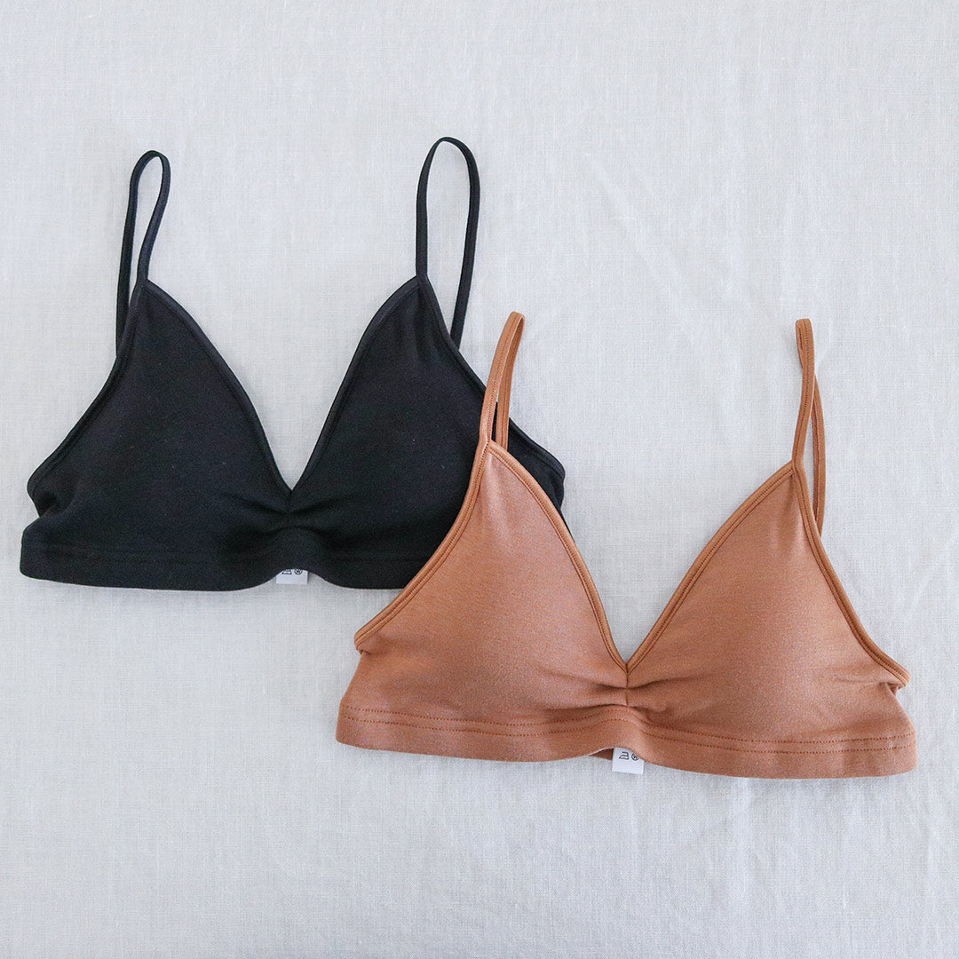 つづいてサイズ感を見てみましょう。どちらのブランドもノンワイヤーでゆったりとしたつくり。サイズ展開はとてもシンプルです。