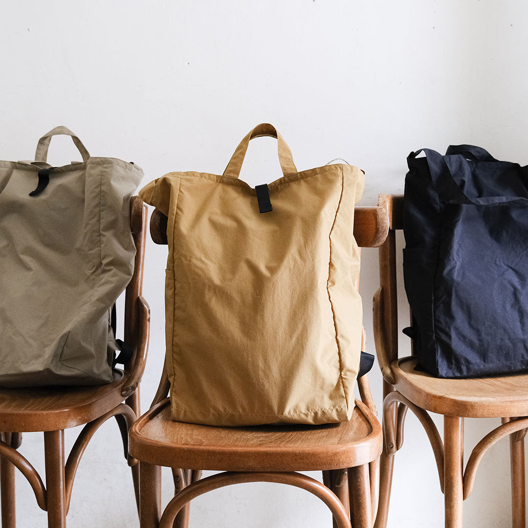 トートとリュックの2つの形があり(リュックもトートとして使用できます)、どちらにもポケットがあったり口が絞れるようになっていたりと充実の機能性。ひとつバッグに忍ばせておけば、外出先でのお買いものも安心して楽しめます。