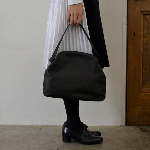 M.F.B._smallが登場する前につくられ、仕事の打ち合わせ道具も難なく入れられるのが、M.F.B 口金バッグ。