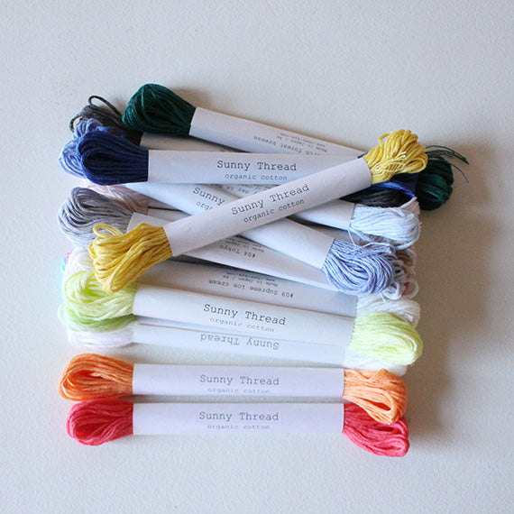 刺繍作家ayaさんが手掛ける、オーガニックコットンの刺繍糸Sunny thread(サニースレッド)はオーガニックコットンと植物の染料から作られた刺繍糸です。