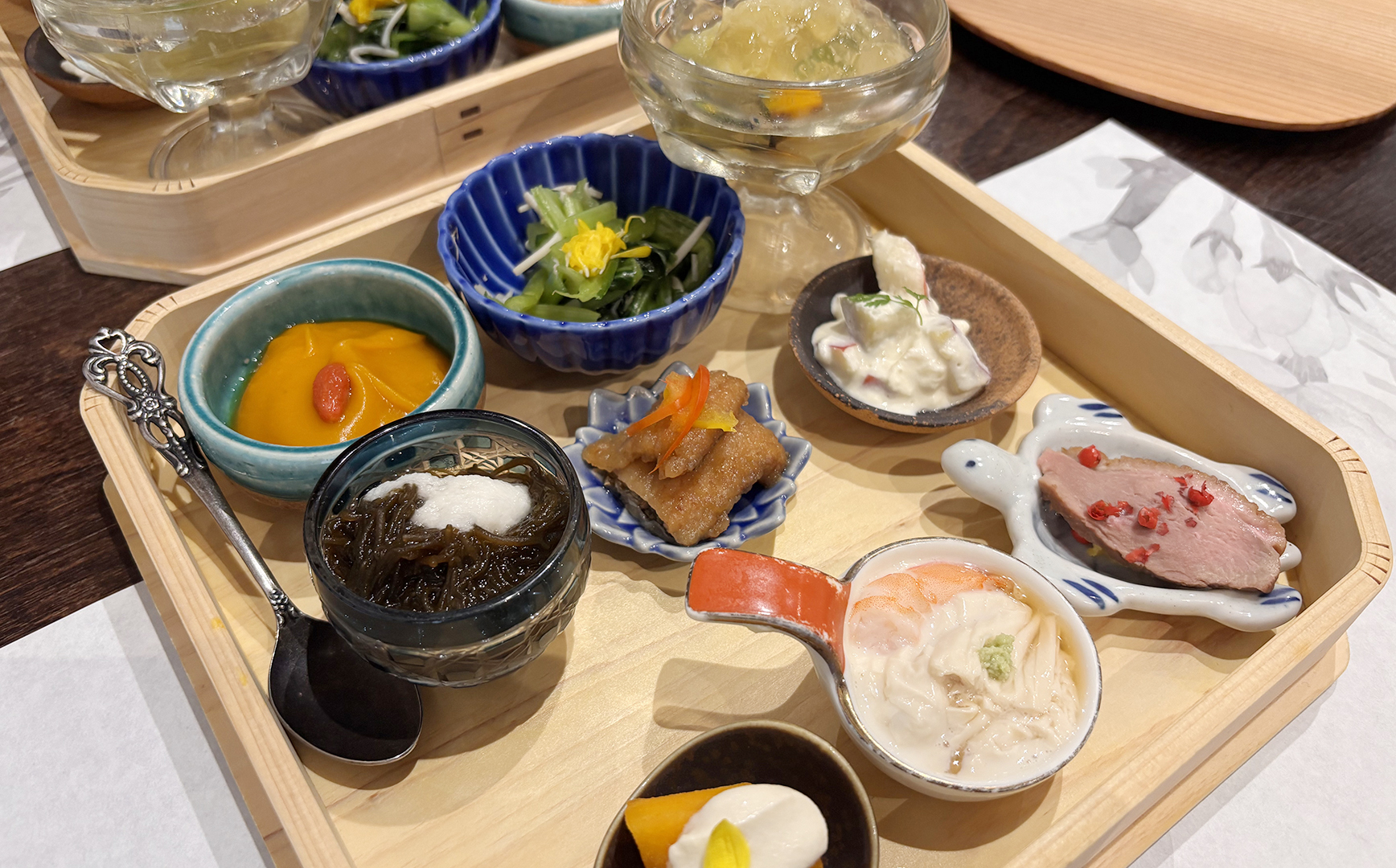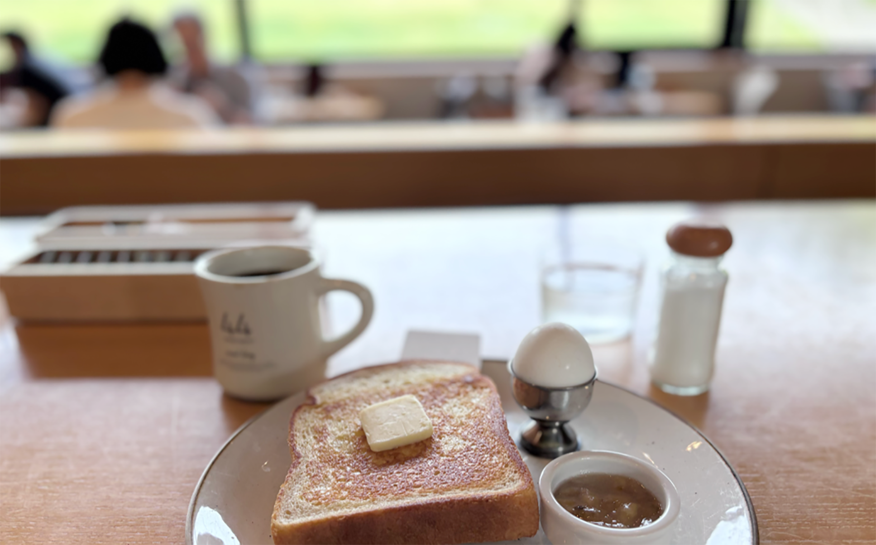 ここでは水辺のある雑木の庭園を散策しながらお茶や食事も楽しめます。私たちも地元の食材を使った料理をいただきました。
