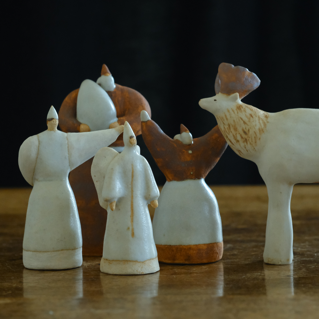 主役はやっぱり、ぷっくりとしたフォルムに点々で描かれた顔が何とも愛らしいサンタクロース。その他、ひとびとや天使、トナカイ、来年の干支でもある馬が届きました。