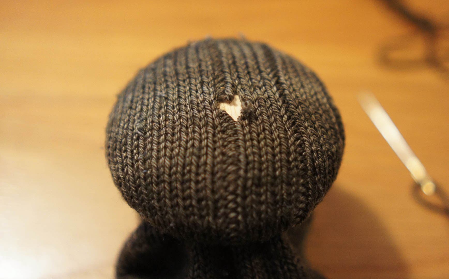 幸い同じ糸がまだ余っていたのでYouTubeなどで調べながら見よう見まねで修復しました。途中に入った裏編みの部分がやや不自然ですがなんとか誤魔化せたかなと思います。