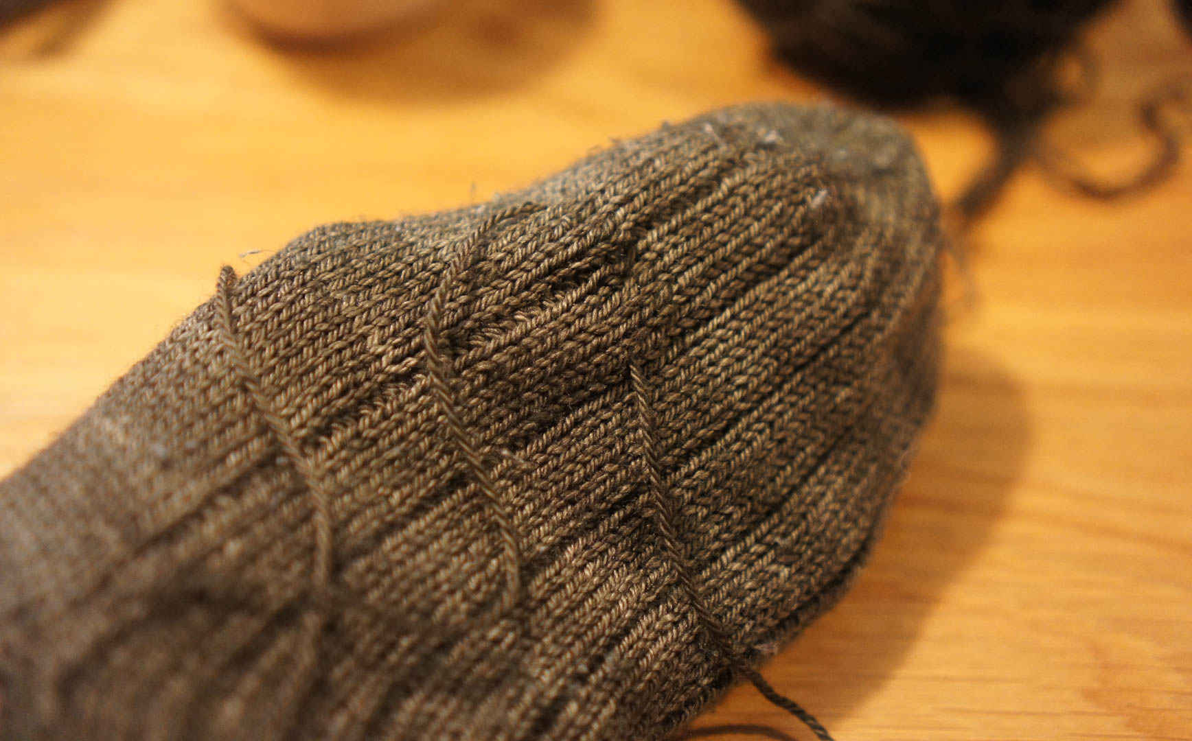 今年の私の編みものは、まず直すところから始まりました。アレグリアのソックヤーンで編んだ靴下に、どこかにひっかけたのか穴が空いてしまったんです。