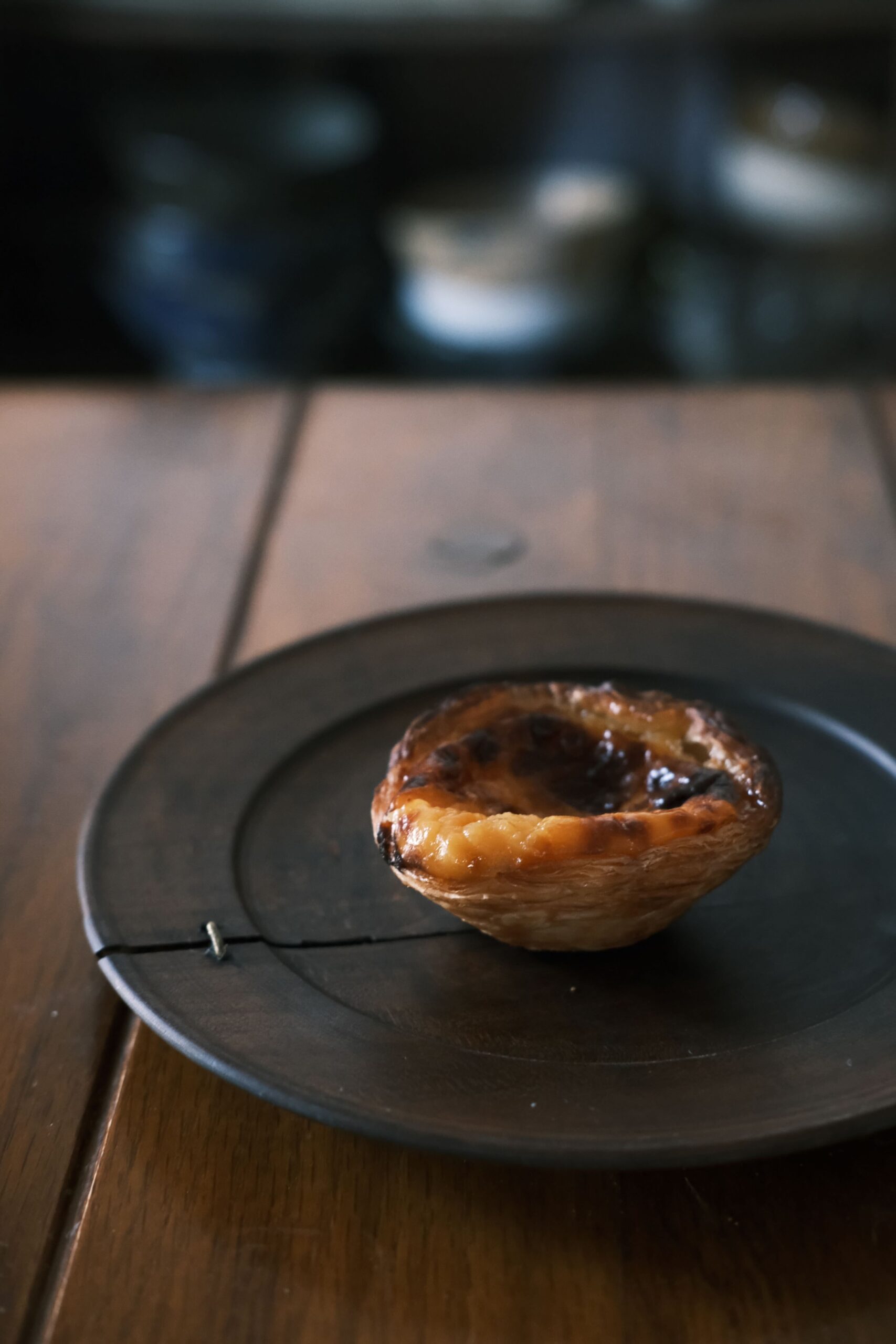 ふたつめは、今年一番大きな「美味しい!」の声を挙げてしまった神保町「ドースイスピーガ」の「パステル・デ・ナタ(エッグタルト)」。このお店はポルトガル菓子屋さんで、ショーケースを見ると「リス川のそよ風」とか「ごあいさつボッレ」とか全部見たことがないお菓子。店に一歩入るだけで、わくわくさせられます。