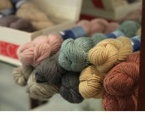 これからの季節にぴったりな毛糸も各色展開。リネン混のウールやアルパカの糸は、独特の風合いがあります。 |