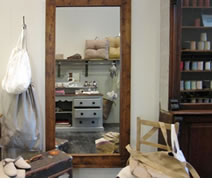 クッション、スリッパ、ランドリーバッグなど、暮らしのためのリネン。 リネン生地を張った椅子、カーテンの見本などもあるので、実物を見て、触れて実感してみてください。 |