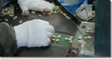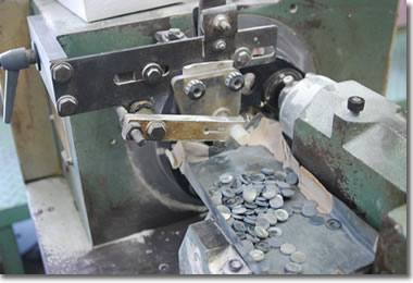「削るのは機械ですが、正しく裏側が削れるよう、機械に入れるときひとつひとつ返していくには、どうしても人の手が必要なんです」。 |