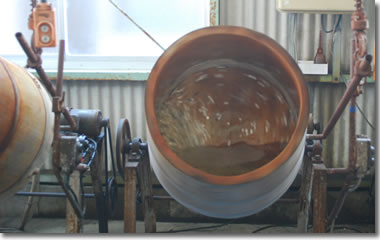 | 凸凹のほうを下にして機械に通し、研磨します。 |