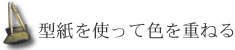 型紙を替えながら、のりの入った染料を次々と塗り重ねて色をつけていきます。 布の上に型紙をのせ、上からスケージで染料をつけるのです。