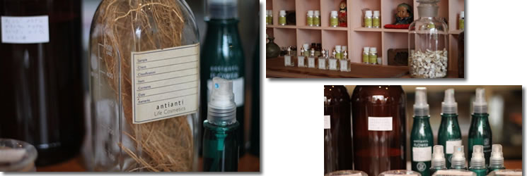 「うちで作っている香水専用の袋をここのリネンで作ってもらえませんか?」 ある日、二子玉川のお店にいらしたお客様から、突然声をかけられました。 これが、「アンティアンティ」の宮崎真さんとの最初の出会いでした。 「香水というと、ゴージャスな感じをイメージされるけれど、ナチュラルなものだけで作った香水だからこそ、リネンのざっくりとした風合いを使いたい」と、依頼されたのです。 「アンティアンティ」は、オーガニックなど材料にこだわったナチュラルな化粧品や香水作りで定評のある会社です。そこで手塩にかけて作り上げた香水の瓶を入れる袋として、宮崎さんが選んだのが、リネンだったというわけです。 |