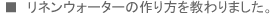 | こうして始まった「リネンウォーター」プロジェクトでしたが、 実はこれがなかなか、一筋縄ではいかないものだったのです。 |
