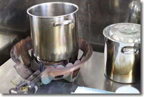 ![]() ここがラボラトリーです。 大小のフラスコやビーカーが並び、まるで学校の理科実験室のよう。 |